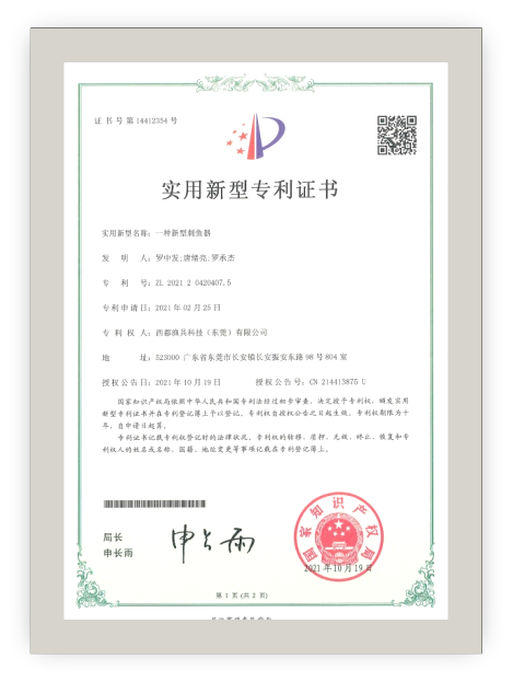20 | 刺魚(yú)器 | 外觀專(zhuān)利 | 202230750360.9 | 2022/11/10 |